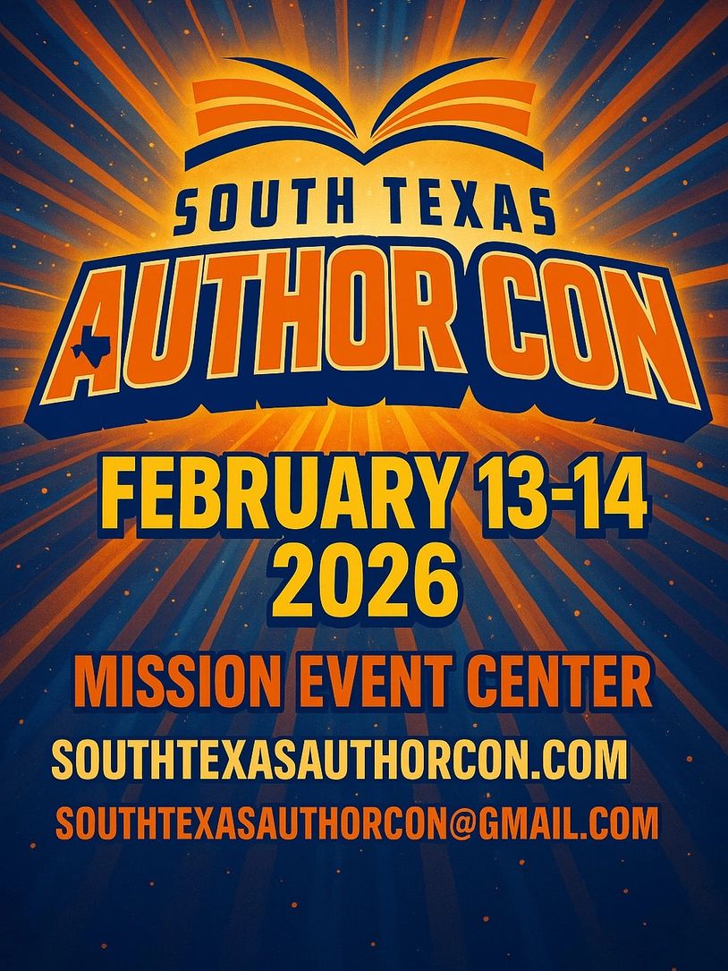 I'm honored to be a part of the South Texas Author Con once again! The 2025 event in San Benito had a great turn out, and the 2026 event in Mission is going to be bigger and better with over 25 authors, prizes, book signings and author panels. February 13th will be exclusively for public schools, and the 14th will be open to the public. Did I mention that this is free of charge?! Drop by and say HI, meet several authors, pick up some books, and have a great time. See you there.